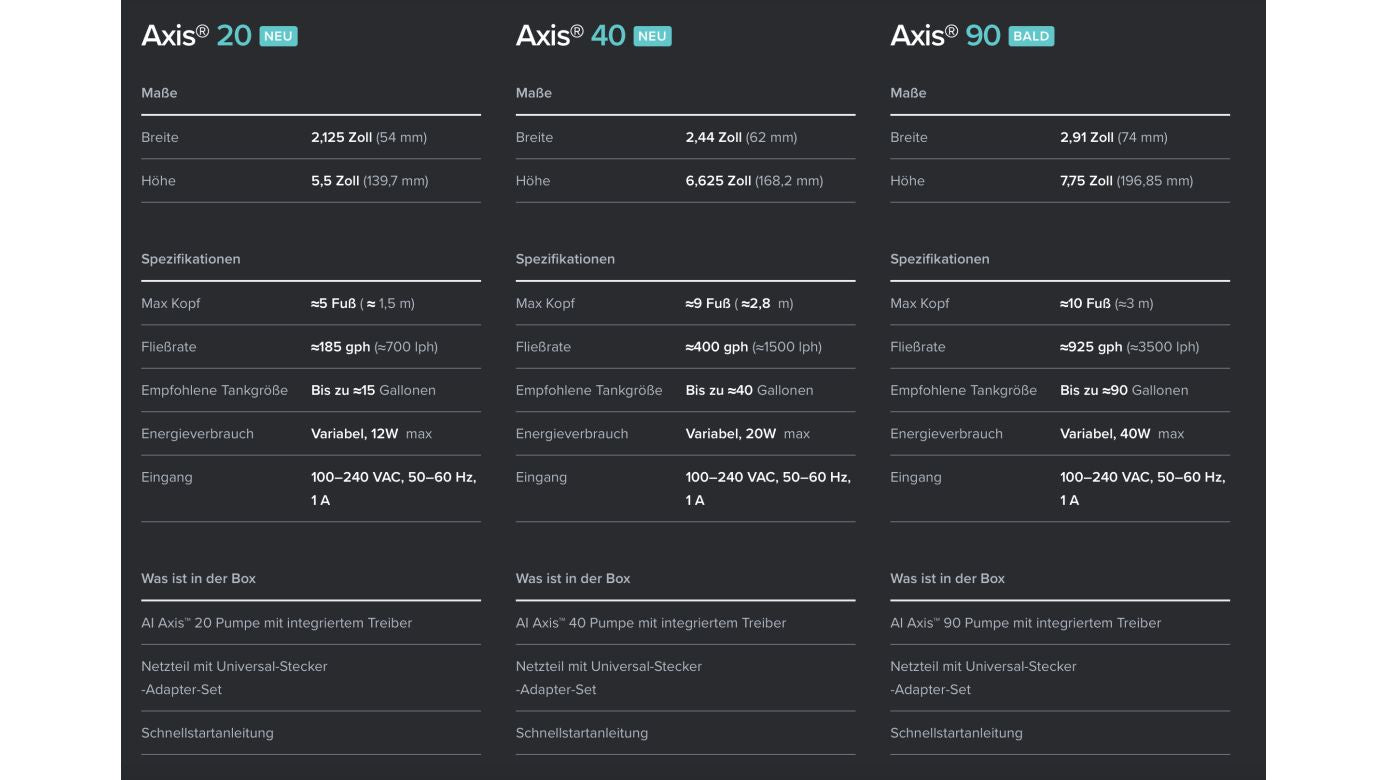Axis-Pumpen bieten vollständige Kontrolle, drahtlose Smart-Device-Programmierung, geräuscharmen Betrieb des Gleichstrommotors und Ausgangskalibrierung. Merkmale, die traditionell deutlich größeren und teureren Pumpen vorbehalten waren. Diese Funktionen ermöglichen: