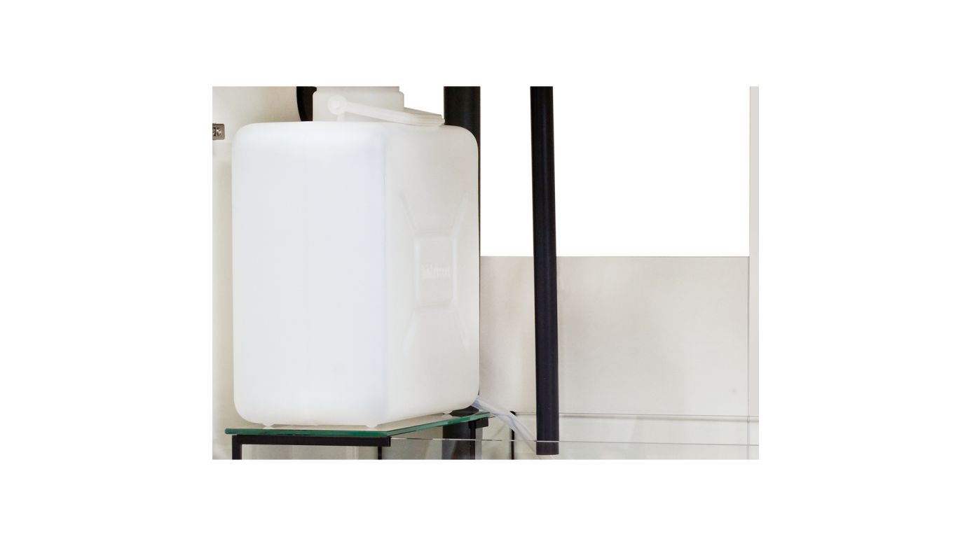 - Glas-Unterschrankfilter mit Vorfilterkammer, zwei Klarwasserkammern zur freien Unterbringung von biologischen und mechanischen Filtern (z. B. Abschäumer, multi reactor, etc.) sowie Filtermedien