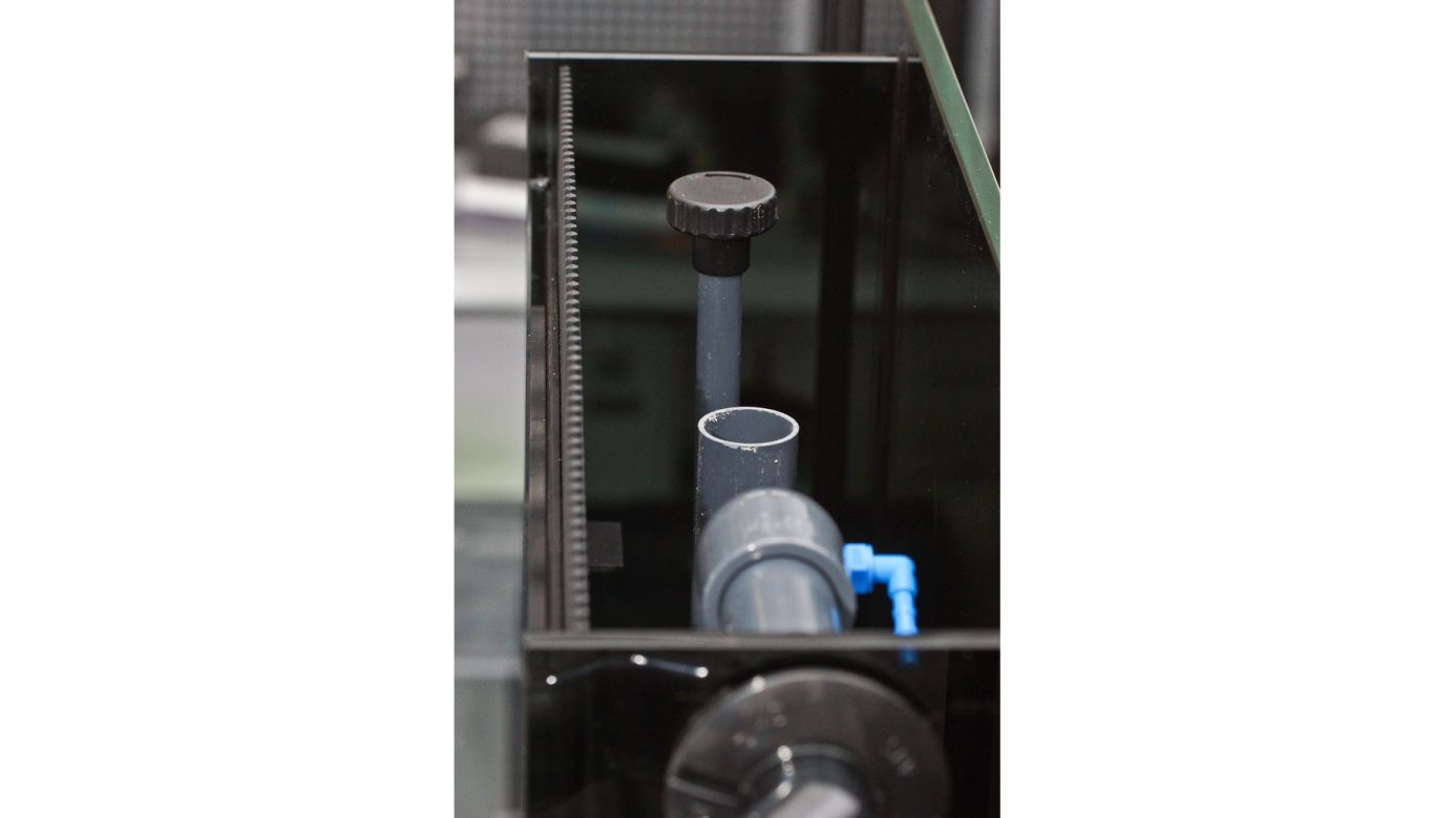 - Glas-Unterschrankfilter mit Vorfilterkammer, zwei Klarwasserkammern zur freien Unterbringung von biologischen und mechanischen Filtern (z. B. Abschäumer, multi reactor, etc.) sowie Filtermedien
