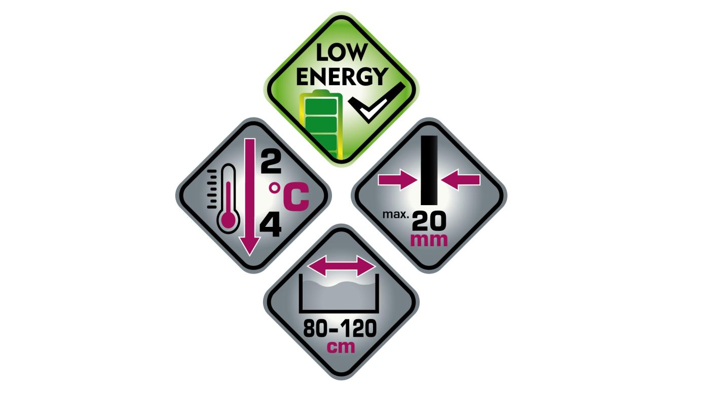 - Energiesparend und sicherer Betrieb durch 12 V Niederspannung