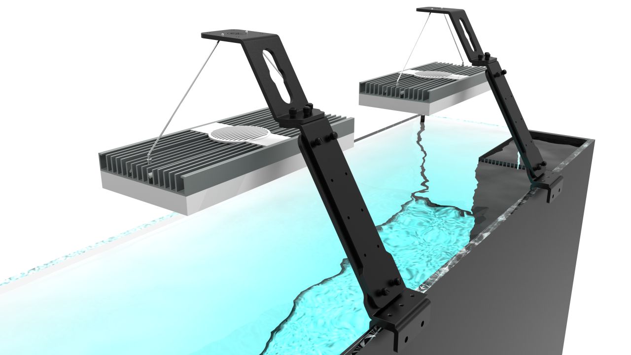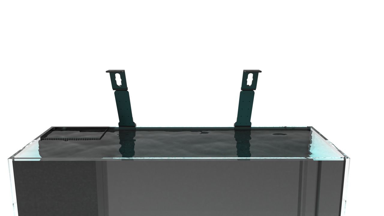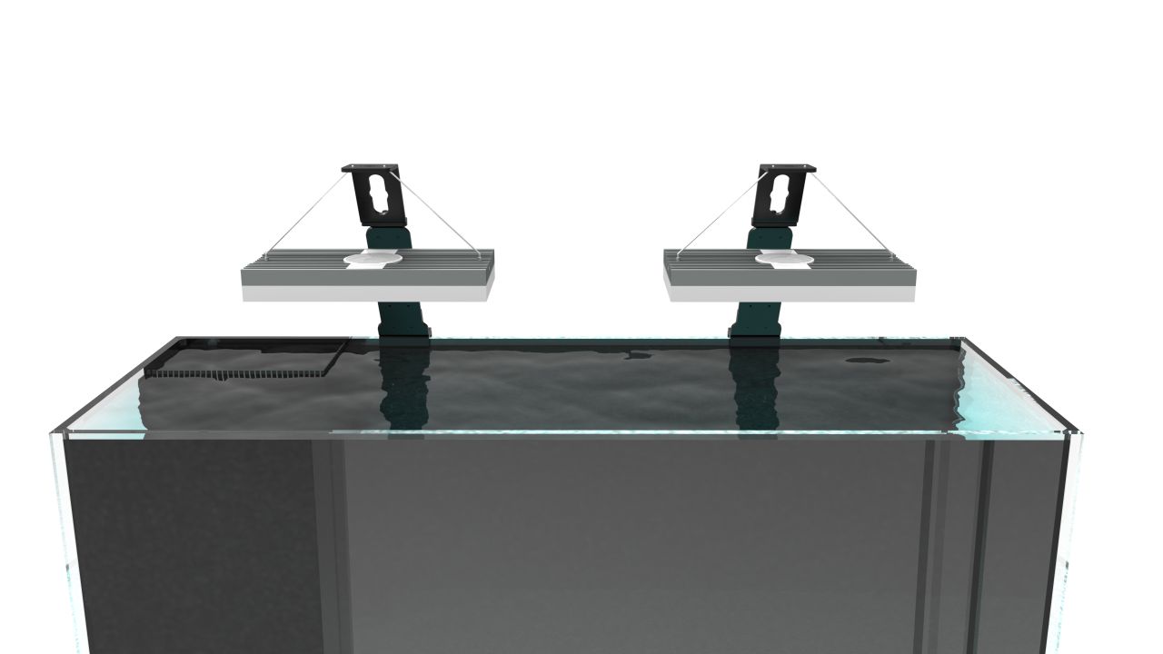 Mit dem Bananaquarium Universal Light Support (ULS) System hast du die Möglichkeit, so ziemlich jedes Beleuchtungssystem an Deinem Meerwasseraquarium zu befestigen, welches sich per Seilaufhängung montieren lässt. Dabei macht das ULS clever von der Möglichkeit gebrauch dass das Beleuchtungssystem an der Decke befestigt werden kann, um es so dann doch Deinem Aquarienrand anzubringen. Dies ist z.B. dann sinnvoll, falls es keine Beckenrandhalter für Dein bevorzugtes System gibt oder dir die vorhandenen nicht gefallen.