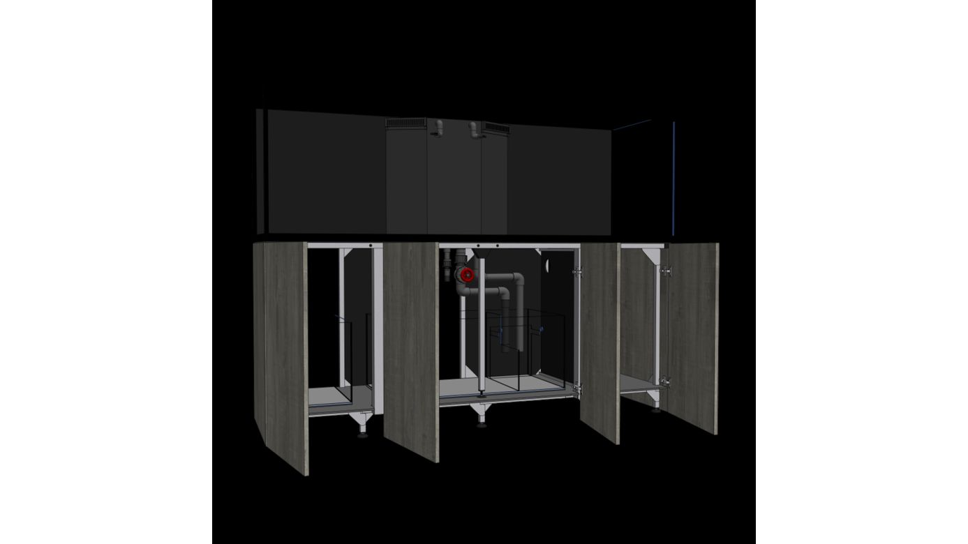 Um möglichst vielen verschiedenen Filteroptionen gerecht zu werden, verfügt das Aqua-Pro Reef 2100 Technikbecken über drei separate Kammern. Die ersten beiden Gerätefächer bieten ausreichend Platz für Abschäumer, Medienreaktoren, Kalkreaktoren etc. Alternativ können Sie eine Kammer als Refugium mit Caulerpa/Ceato nutzen. Im letzten Bereich befindet sich ein großzügig bemessenes Rücklaufpumpenfach. Der separate Nachfüllbehälter für einen ATO ist unabhängig und passt perfekt in den Schrank neben dem Technikbecken.