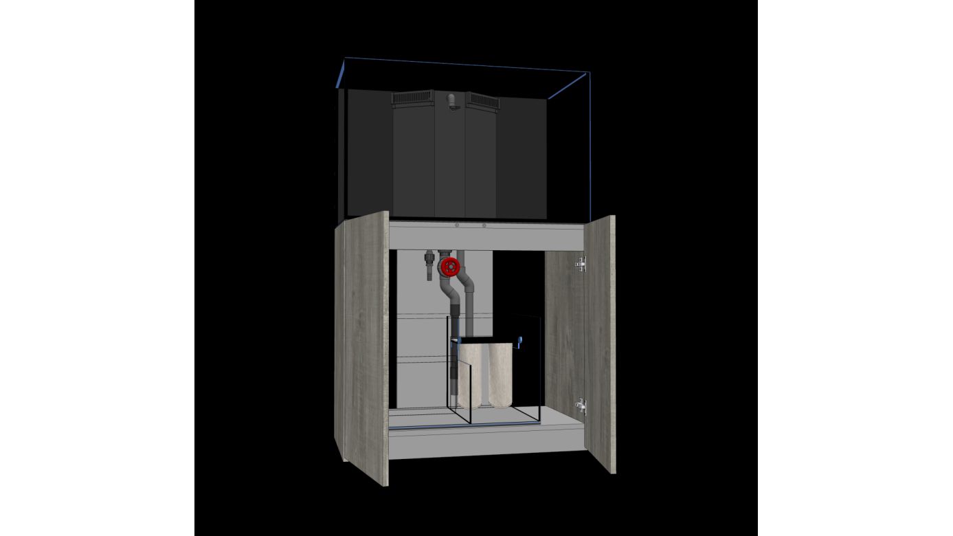 • Zwei große Kammern für Geräte/Eiweißabschäumer.