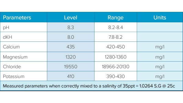 Der Calcium- und Magnesiumgehalt soll diejenigen ersetzen, die durch das Korallenwachstum im Aquarium verbraucht werden, während der Chloridgehalt leicht gesenkt wird