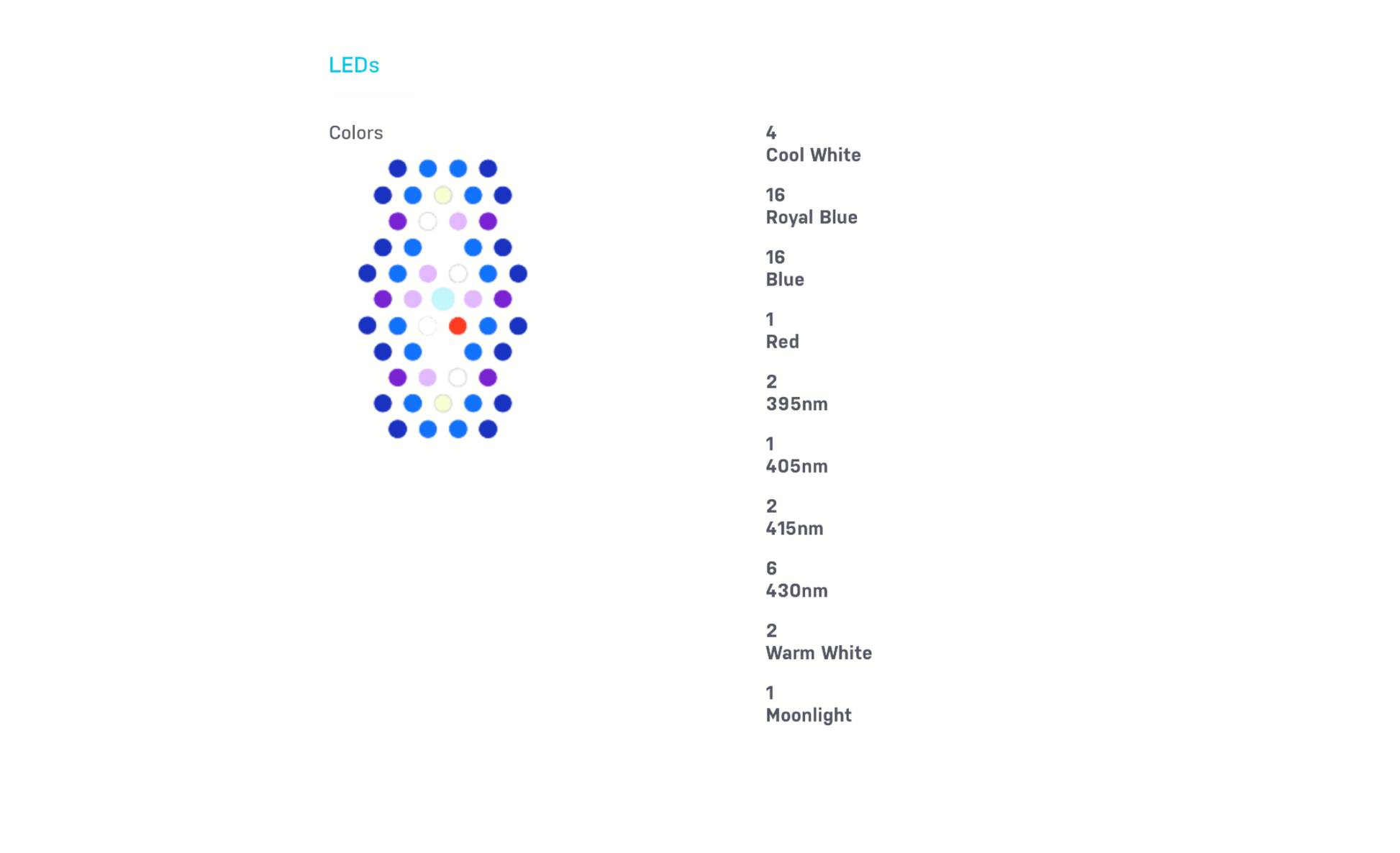 Die Neugewichtung des Clusters mit mehr Blau und Tiefblau erhöht die Fluoreszenz, die Farbwiedergabe und bietet eine neue Ebene der Abstimmbarkeit im blauen Spektrum zwischen knackig und aktinisch.