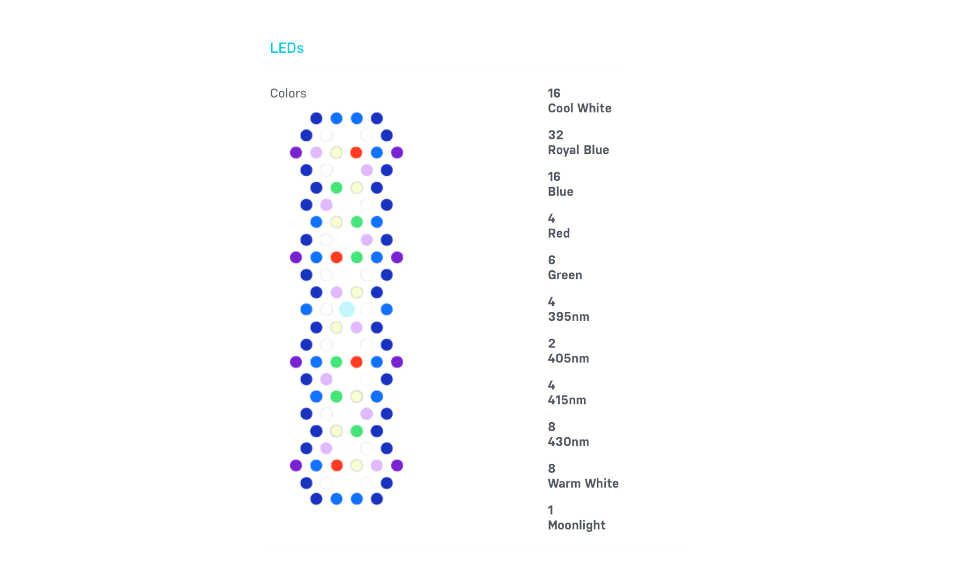 Die Neugewichtung des Clusters mit mehr Blau und Tiefblau erhöht die Fluoreszenz, die Farbwiedergabe und bietet eine neue Ebene der Abstimmbarkeit im blauen Spektrum zwischen knackig und aktinisch.