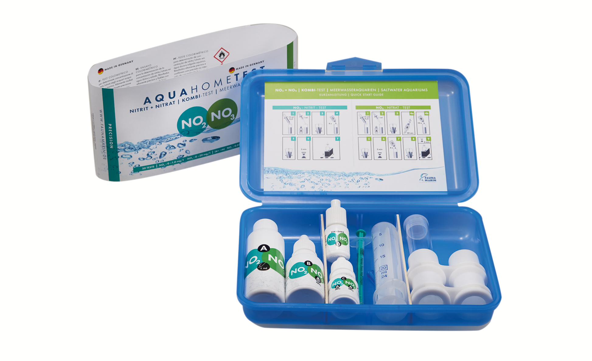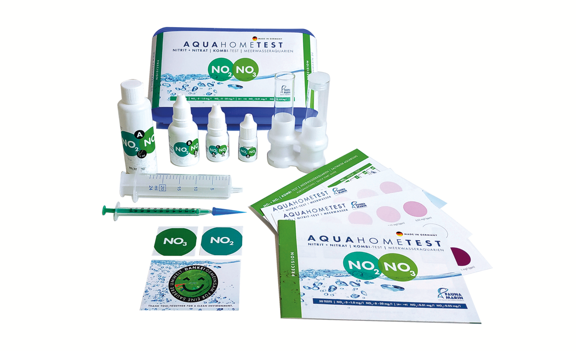 Mit dem hochauflösenden Fauna Marin Nitrit/Nitrat -Test kann die Nitrit-Konzentration mit einer besonders hohen Genauigkeit im niedrigen Konzentrationsbereich zwischen 0 und 1 mg/l und eine Nitrat-Konzentration zwischen 0 und 20 mg/l bestimmt werden.