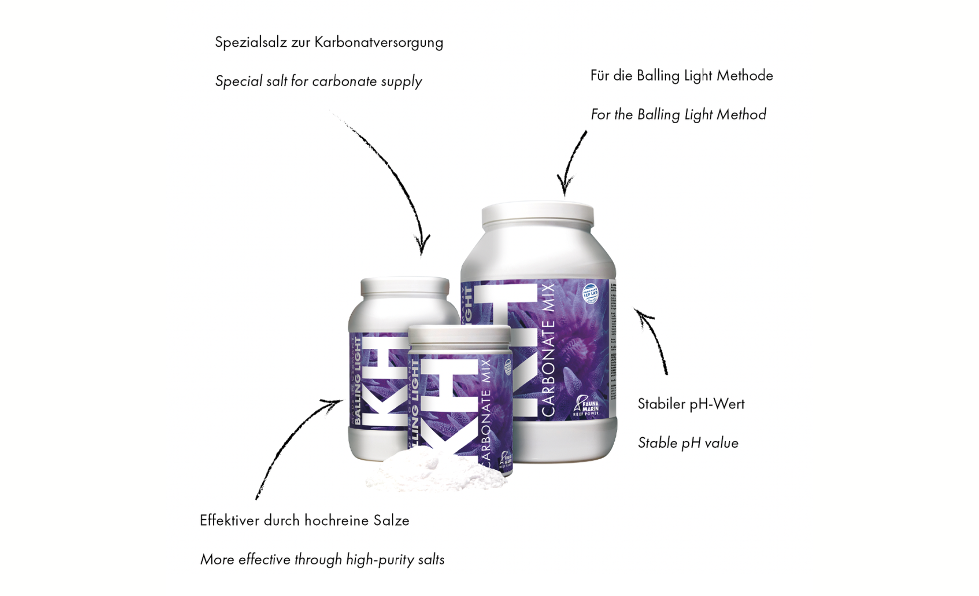 Balling Light Carbonate-Mix von Fauna Marin ist ein reines Spezialsalz zur Carbonatversorgung mit der Balling Light Methode in Meerwasseraquarien.