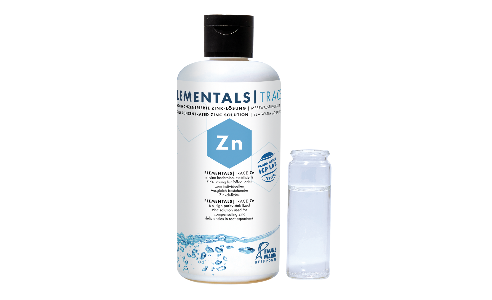 ELEMENTALS TRACE Zn ist eine hochkonzentrierte Zinklösung für Meerwasseraquarien zum individuellen Ausgleich bestehender Zinkdefizite.