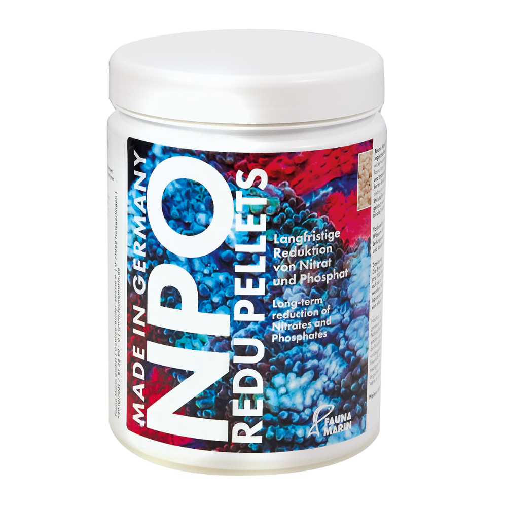 - Innerhalb von spätestens 3–4 Monaten pendeln sich die Wasserwerte auf niedrigem Niveau ein. Fauna Marin Redu Pellets sorgen hier für einen langsamen und gleichmäßigen Abbau von Phosphat und Nitrat. Je weiter die Werte im System absinken, desto langsamer arbeitet der Filter.