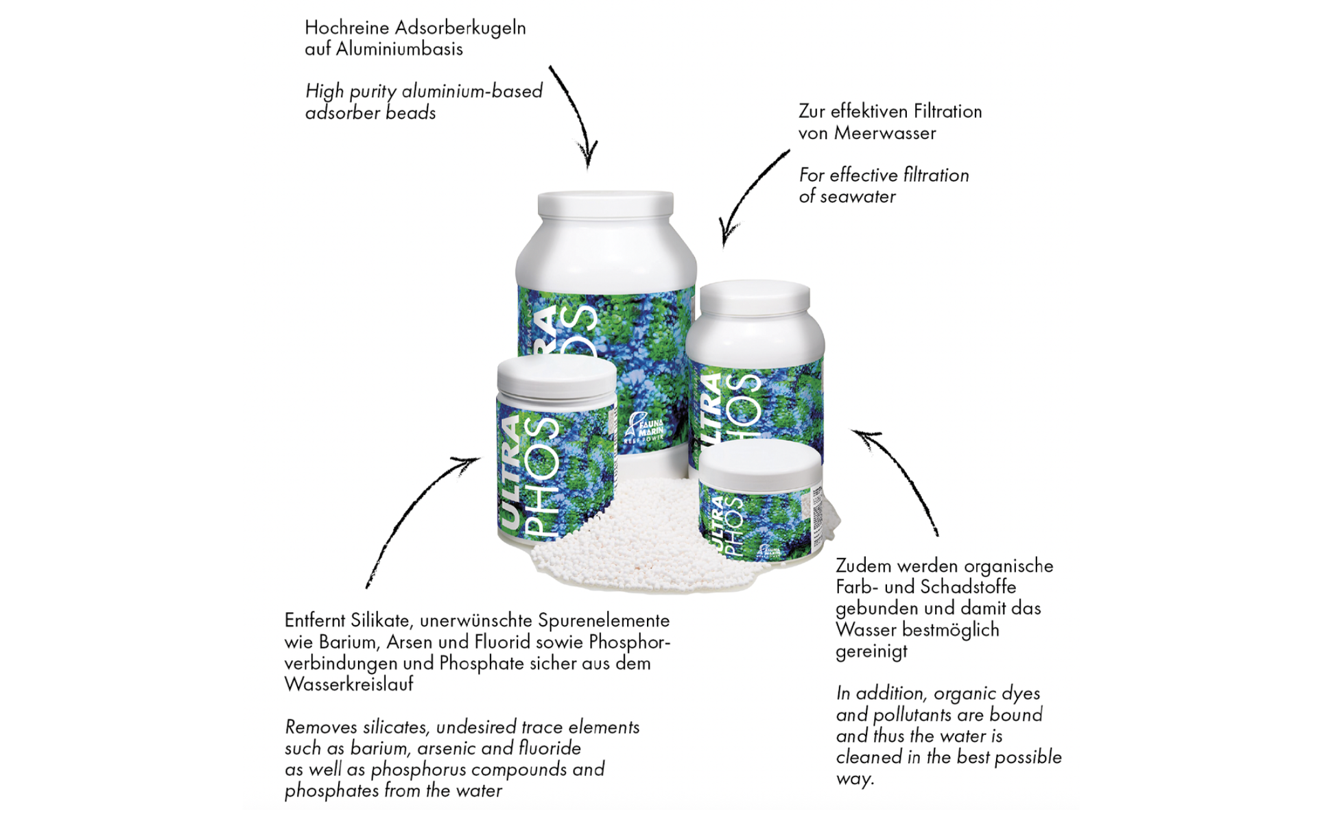 - Ultra Phos ist ein aktiviertes Adsorbergranulat auf Aluminiumbasis,