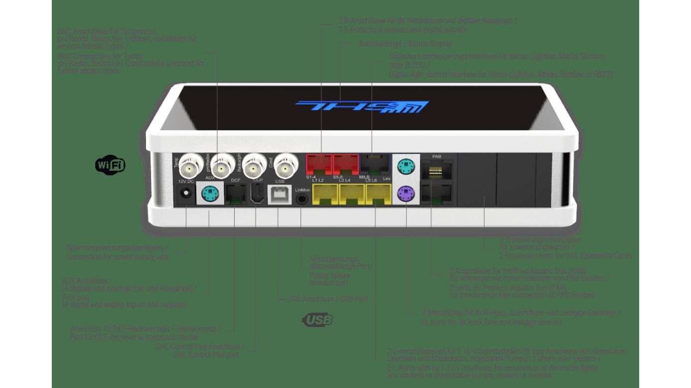 USB und WiFi sorgen für eine optimale Konnektivität, per Webinterface, Email und Cloud-Service bleiben Sie stets bestens über die Vorgänge in Ihrem Aquarium informiert.