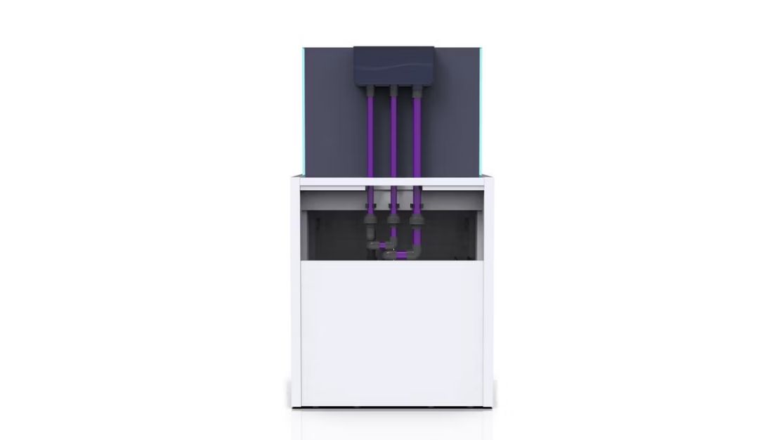 - Aquarium mit externem Überlaufschacht und drei Seiten in Ultra-Klarglas Unterschrank