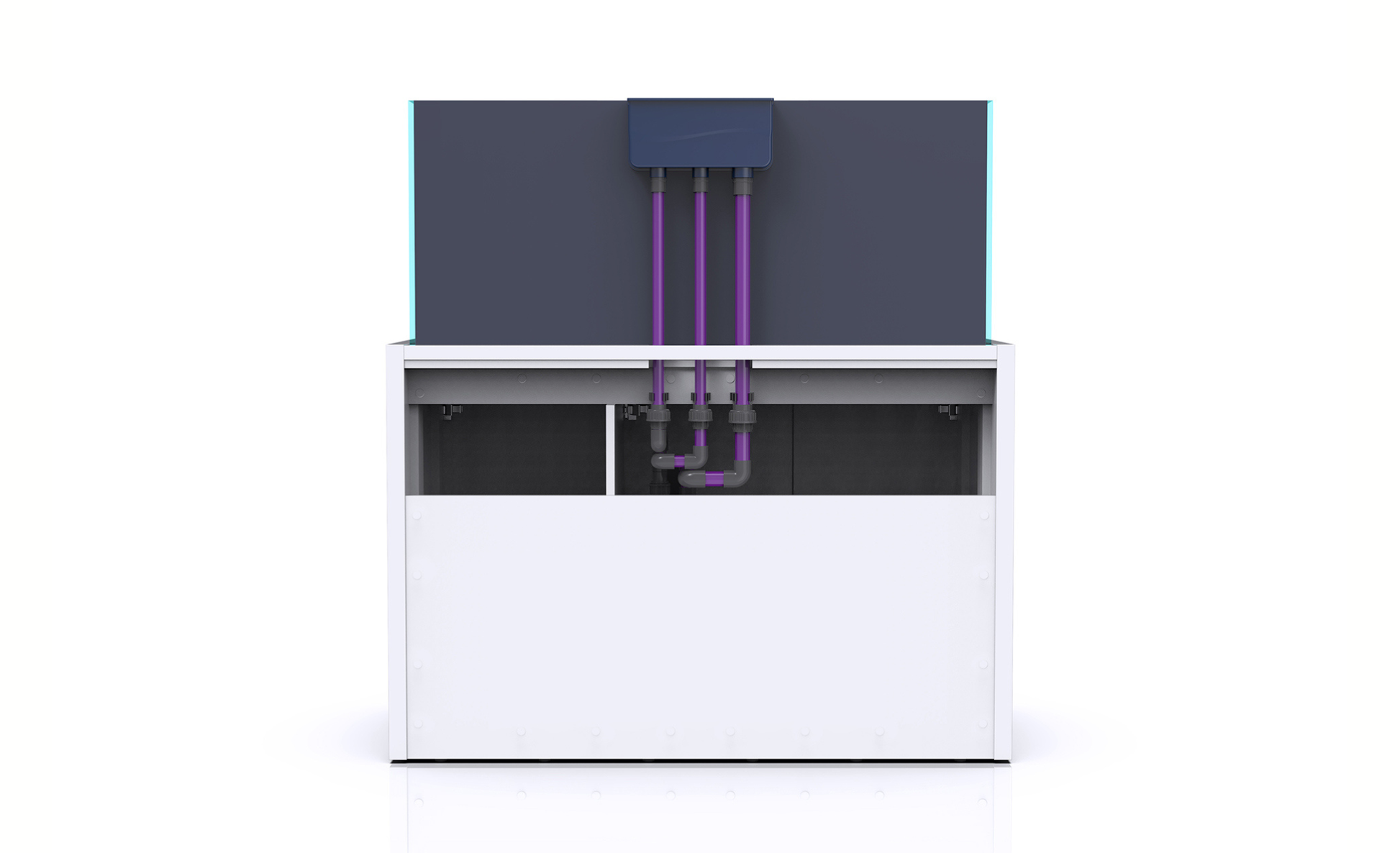 In der großzügig dimensionierten Hauptkammer können mehrere Geräte wie Abschäumer, Wirbelbettfilter oder Algenreaktor gleichzeitig untergebracht werden. Die Hauptkammer weist einen konstanten Wasserstand von ca. 21cm auf.