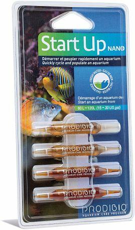 Prodibio Start up begünstigt das schnellere Einsetzen der biologischen Filtrierung von Aquarien, indem es den hohen Wirkungsgrad von Bio Digest mit der Wirksamkeit von Stop Ammo verbindet. Die Packung enthält sowohl Ampullen von Stop Ammo als auch Ampullen von Bio Digest. Start up gestattet eine sofortige Besetzung des Aquariums mit Fschen in begrenzter Menge. Zuer Verwendung ind Süß- und Meerwasser geeignet.Stop Ammo blockiert die Bildung vom Ammoniak und neutralisiert Ammoniak beim Einrichten des Aquariums zu mehr als 50%. Es begrenzt so das Ansteigen des Nitritgehaltes (Nitritpeak) während der delikaten Stabilisierungsphase des Aquariums. Dosierung: 1 Ampulle auf 60 Liter Wasser beim Einsetzen der Fische in das Aquarium zugeben.