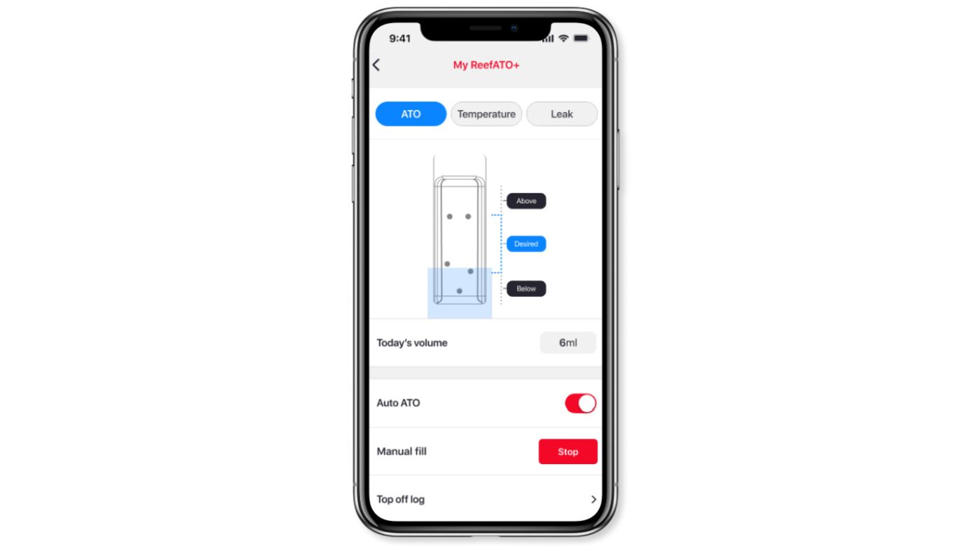 Die ReefATO+ wurde entwickelt, um einen stabilen Salzgehalt und ein stabiles Wasservolumen in einem Riffaquarium aufrechtzuerhalten, indem es das durch Verdunstung verlorene Wasser automatisch wieder auffüllt. Darüber hinaus bietet die ReefATO+ zwei weitere kritische Aquariengesundheitsindikatoren: einen voll ausgestatteten digitalen Online-Temperaturmonitor und einen Leckdetektor.