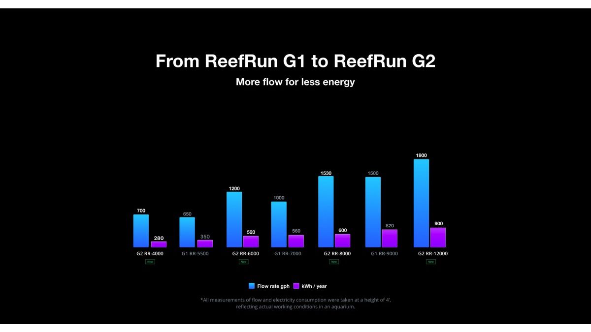 Die leistungsstarken ReefRun G2-Modelle reichen von 4.000 LPH bis zu beeindruckenden 12.000 LPH.