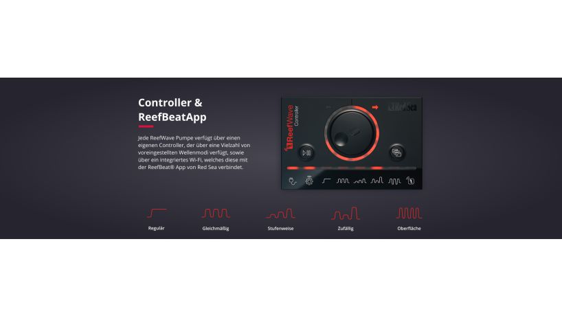 Sie können jede ReefWave-Pumpe lokal über einen eigenen dedizierten Controller oder per Remote über das integrierte Wi-Fi steuern, welches problemlos eine Verbindung zur ReefBeat-App von Red Sea herstellt.