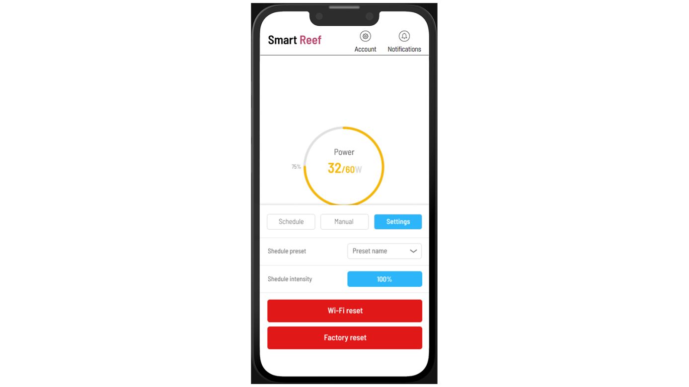 Alles, was Sie zur Steuerung des intelligenten GerĂ€ts benötigen, ist die kostenlose Smart Reef-App. Sie können sie auf Ihrem mobilen GerĂ€t (Android, iOS) installieren oder direkt ĂŒber einen Browser bedienen. Koppeln Sie das GerĂ€t einfach mit Ihrem Smart Reef-Konto, um eine Vielzahl von intelligenten Funktionen zu nutzen.