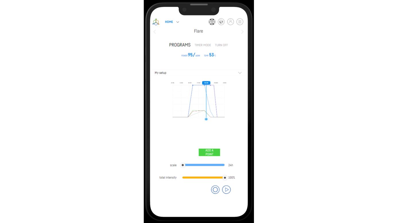 Ein neues, verbessertes Lichtmanagement-Panel. Größere Schieberegler und die Möglichkeit, den Prozentsatz der einzelnen Farbkanäle einzugeben. Außerdem wurde ein Leistungsregler hinzugefügt, mit dem Sie bei der Programmierung ganz einfach die Gesamtintensität des Lichts über alle Kanäle hinweg einstellen können.
