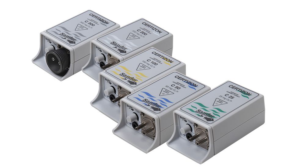 Die Sander Ozonisatoren der Baureihe Certizon bieten diverse Leistungsstufen von 25 mg/h bis 300 mg/h an. Alle Certizon sind mit einem Potentiometer (Drehknopf) fĂĽr die einfache und stufenlose Einstellung ausgerĂĽstet.