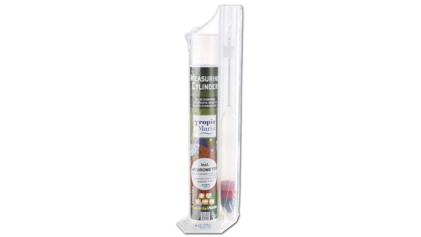 Der Tropic Marin® Messzylinder besteht aus PP (Polypropylen). Das Tropic Marin® Präzissions-Aräometer ist aus mundgeblasenem Glas.