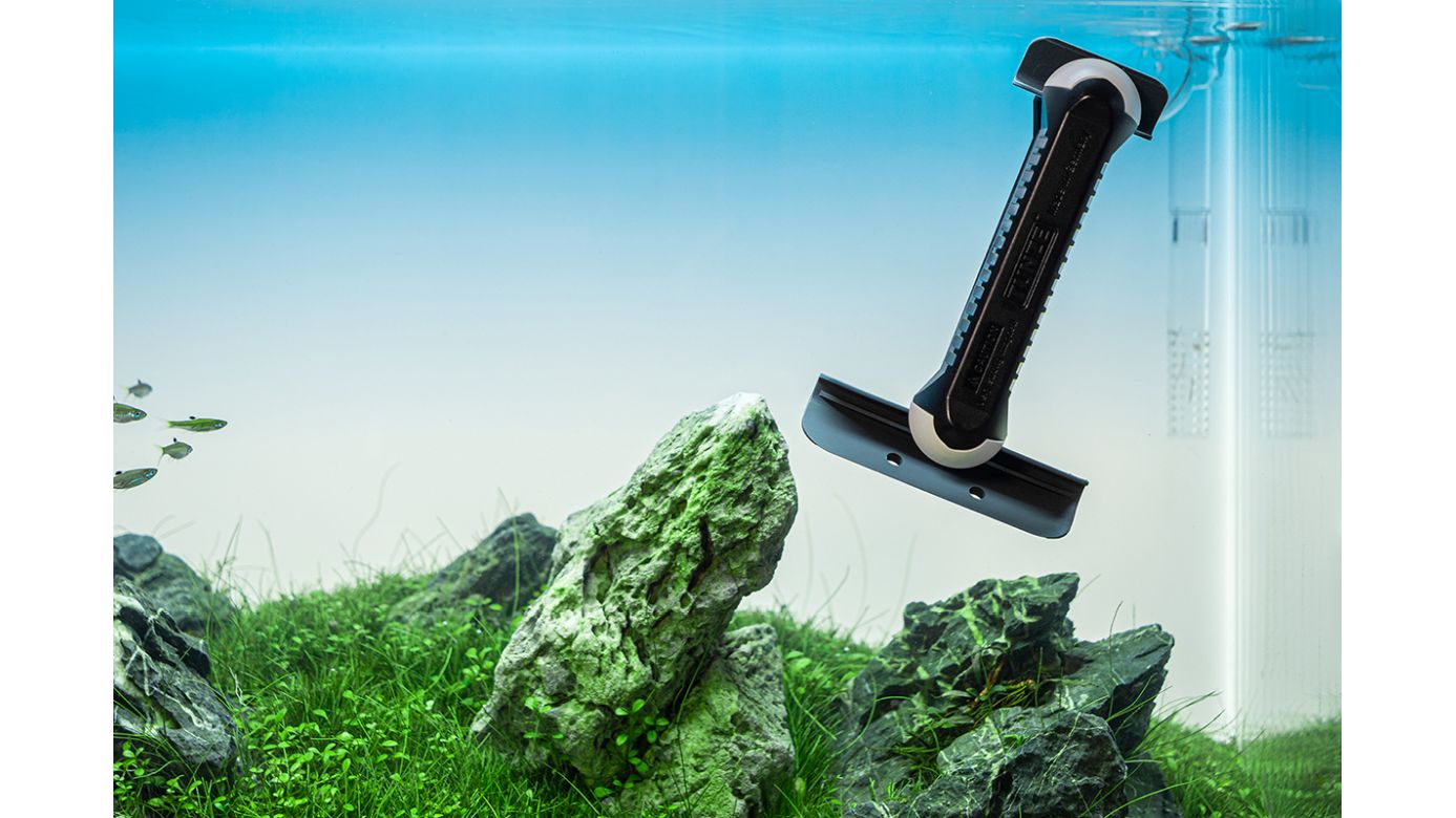 Durch diesen Scheibenreiniger wird es fast unmöglich, Aquarienscheiben (Glas oder Acryl) zu verkratzen. Der Innenmagnet ist mehr als 3 mm von der Aquarienscheibe entfernt und verhindert das Verklemmen des Aquariensands. Die beiden Kunststoffklingen entfernen die Algen deutlich besser von den Scheiben als eine flache Reinigungsfläche, fast so gut wie eine scharfe Metallklinge. Die Lebensdauer einer Klinge liegt bei mehreren Monaten bis ca. einem Jahr. Der geringe Fließwiderstand beim Reinigen mit gleichzeitiger hoher Magnetkupplung macht das Abheben des Magnets fast unmöglich.