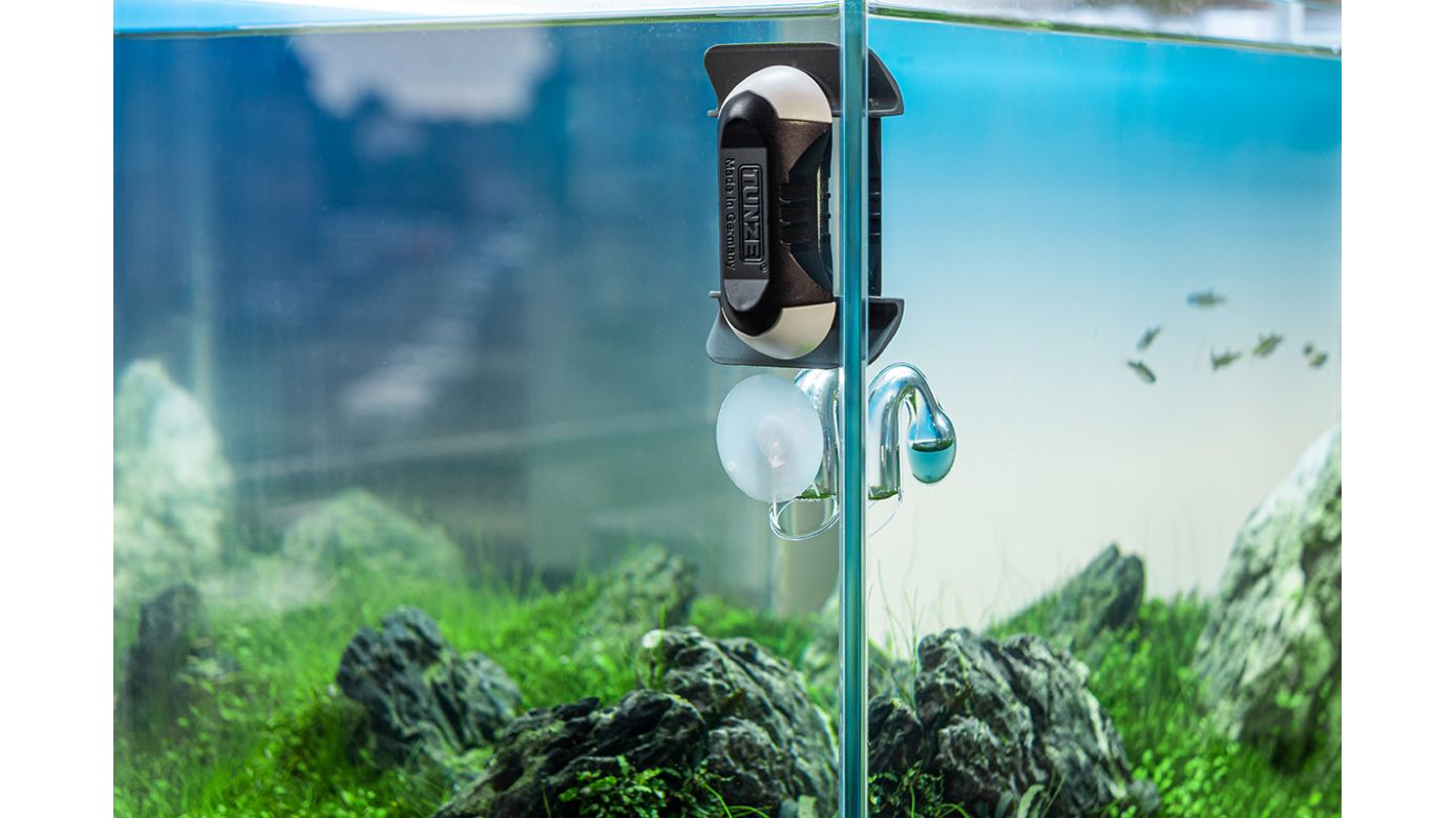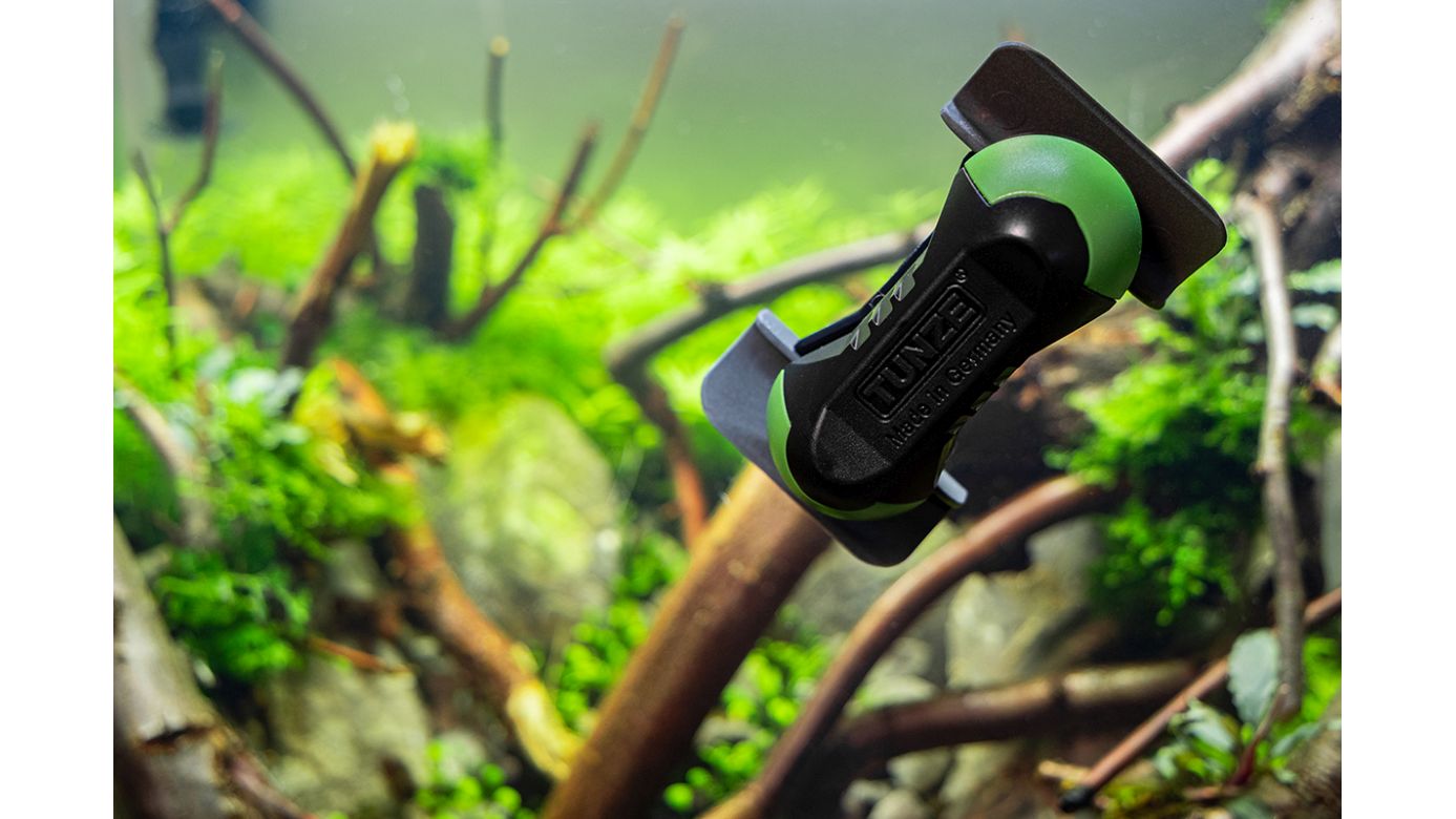 Nur bei Glas-Aquarienscheiben mit besonders harten Algen, z.B. älteren Ablagerungen an seitlichen Wänden oder dicken Kalkrotalgen, sollte die große Klinge mit der speziell mitgelieferten Edelstahlklinge erweitert werden.