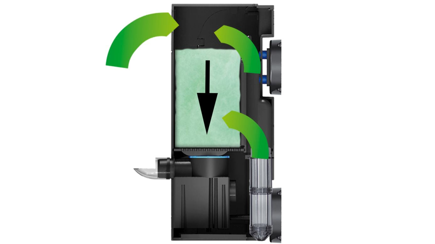 Es brauchen nur zwei Teile ausgewechselt zu werden (serienmäßig mitgeliefert) und der Multifilter wird zum Universal-Innenfilter mit einem Filtervolumen von 1.200 cm³. Er integriert sich als Hauptfilter in einem Aquarium von 200 bis 500 Liter, aber auch als Zusatzfilter für eine gezielte Filterung (Aktivkohle, Zeolith, etc.) in größeren Anlagen. Silikonpuffer am Multifilter verhindern die Abgabe von Vibrationen an die Aquarienscheibe.